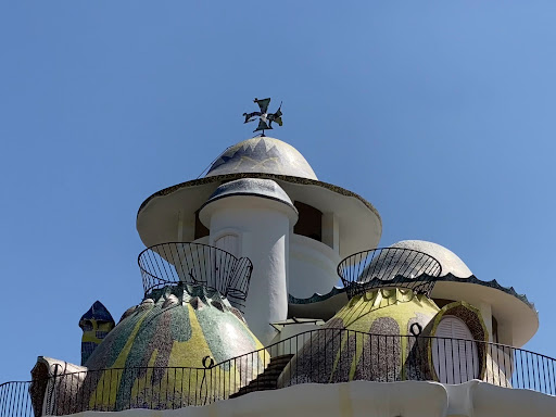 Me gustó, a parte de lo excentrica y colorida de la obra exteriormente, las dos escaleras de caracol con baranda de hierro forjado que diseño el arquitecto.