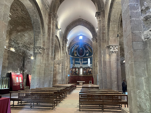 Read moreLa iglesia es de estilo románico con planta basilical, de forma rectangular, compuesta por tres naves, una central y dos laterales. Destaca el gran ábside y dos absidiolos a cada lado del ábside central, una de las que se perdió el siglo XVIII. Del interior destaca la decoración de los capiteles, la pila bautismal del siglo XII y las diferentes obras de arte expuestas a las naves laterales, entre las que se encuentra una réplica de la Majestad de Sant...