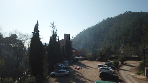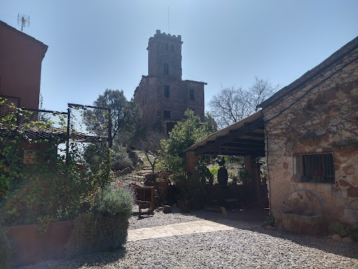 El edificio básicamente está pegado al restaurante y no puedes acceder a él (ver la foto con la valla). El área (alrededores) es bonita, con bastante desnivel, así que si hace calor y quieres hacer una buena caminata, mejor prepárate. En nuestro caso, no hicimos mucha ruta, puesto que no era nuestra intención, aunque sí que llegamos a algún paraje que otro (ver foto). No quiero dejar de mencionar que hay lobos salvajes en la montaña, que se oyen claramente (y NO son perros, que también los hay puesto que hay algunas propiedades por la zona), por lo que si vas en familia -con peques-, aconsejo no alejarse en demasía de la zona del restaurante. También a destacar, al menos por la ruta que fuimos nosotros, el acceso está FATAL. Si quieres destrozar tu coche, es una buena ruta donde llevarlo a cabo. Kilometros de camino de piedras y tierra, con baches de hasta medio metro por los que tendrás de pasar sí o sí. No entiendo como no hay asfalto del "barato" o al menos un camino sin socavones tan exagerados... Al menos, una vez llegamos, pudimos aparcar fácil en la zona habilitada para ello.