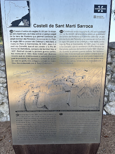 The castle and the church sit at the top of a rocky hill from which you can see a significant portion of the Penedès and the current town of Sant Martí Sarroca (originally surrounding the castle). Both buildings have a rich history that is explained in sufficient detail in the guided visits, which include a video available in multiple languages. I recommend calling ahead of time to arrange a visit in a language other than Catalan. The tour guide was very kind and allowed us and several other small groups to join the ongoing visit, and then would do another loop to show the first part we had missed. I have to say the visit went on for longer than necessary, as the guide sometimes engaged in conversations about unrelated matters. That said, he was very knowledgeable, accepting questions any time and...