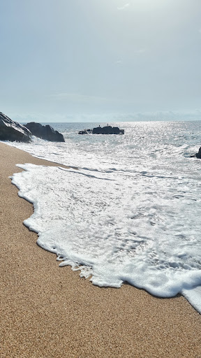 Con respecto a la playa me encanto y si no fuera por las situación que vivimos mis amigos y yo pues volvería a ir. Primero que nada la parte de las rocas no está señalada con que es un espacio nudista(lo cual para mí no era un problema). Mis amigos y yo fuimos a trabajar para una marca de ropa interior y fuimos a hacer una sesión de fotos para promocionar los productos, cuando llegamos estábamos completamente solos pero poco a poco se comenzó a acercar gente, y puedo decirles que vivimos momentos muy incómodos por qué 4 de estas personas en diferentes tiempos de llegada se manoseaban viéndonos a mi amiga y a mi trabajar. No pudimos llamas a la policía ni hacer nada más que hablarles y gritarles que pararan ya que vinimos de muy lejos para hacer las fotos y teníamos un montón de bolsos y cosas para que fuera todo en ese momento. El peor de los casos fue un hombre canoso con aspecto de 60 años que se empezó a masturbar a 3 metros de mi por qué yo esta arriba de una roca sentada para la foto y su excusa de hacerlo fue que "era imposible no hacerlo si estás eran sus vistas" (vuelvo a recalcar que estábamos vestidas, mi amiga tenia un pantalón y estaba modelando la parte de arriba, NO ESTABAMOS DESNUDAS ni tampoco insinuando ningun acto fuera del modelaje para que el hombre entienda lo contrario. YO tenía una camisa puesta y el conjunto de ropa.) Me parece estúpido aclarar esto pero para que se entienda el contexto. A lo que voy con el comentario es que si van solas tengan cuidado por qué la gente está muy loca y nosotros ser 3 nos sentimos tranquilos para poder seguir con la sesión y poder hablar esto luego pero si vas sol@ da miedo si puede...