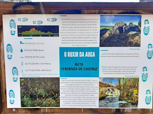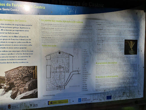 En el ayuntamiento de Santa Comba se encuentra esta fervenza , de 8 metros de altura. Concretamente, en la aldea de Castriz. El acceso es por carretera asfaltada hasta algo menos de 1 km antes, donde cambiamos el asfalto por una pista de tierra. No hay mucho sitio para coches, por lo que es recomendable aparcar antes. Hay varias posibilidades para bajar y la peor es la de cemento, porque tiene una pendiente considerable y las otras, por lo menos, con barandillas de madera, resultan mucho más agradables. Una vez abajo, te encontrarás con un área recreativa, con mesa y barbacoas, un pequeño puente para cruzar el río y los cinco molinos que han sido restaurados y tienen nombre propio, abiertos y uno de ellos prácticamente completo. El día se puede completar con la ruta de senderismo que...