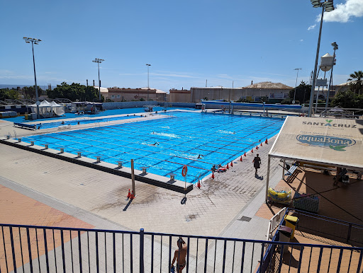 great place. dream training facility for swimmers. once you had to buy tickets at the city office now there is a van from the city office at the entrance from the intersection of av. reyes catolicos and av. de benito perez armas. entry €2. first time you have to show your passport or other ID. after paying the ticket you go down the stairs and show the ticket to the lifeguards behind the counter. you leave your things in the tents on the right. you have to have your own padlock if you want to lock them but it is safe most people do not lock them. the bathrooms are on the other side of the tents on the left side of the entrance. the water is pleasantly warm perfect for training the pool is heated. you can use the lanes with orange cones, the other lanes...