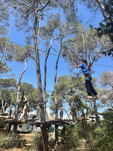 Lo mejor es la sensación de aventura: ir de árbol en árbol con arneses, deslizarte por tirolinas larguísimas, saltar, trepar y reírte mientras descubres que tienes más agilidad de la que pensabas. Todo en un entorno natural, rodeado de pinos, con el Mediterráneo cerca.