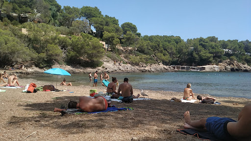 El ambiente en la cala es muy tranquilo, con una mezcla de locales y visitantes que buscan algo distinto a las playas masivas. Aquí no hay lujos ni postureo: es para disfrutar de la Ibiza más auténtica, del mar, del pescado fresco y de la calma.