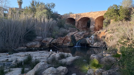 Pont Vell is the ancient bridge which crosses the Riu de Santa Eulària, the only river on the Spanish island of Ibiza. The bridge stands next to the modern road bridge on the western approach to the town of Santa Eulària des Riu.