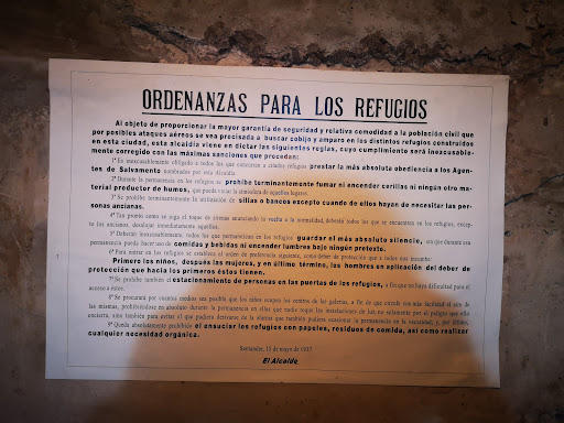 Read moreLugar que transmite sin ningún género de dudas la angustia que aquellas personas vivieron durante la Guerra Civil. El refugio, transmite a su vez un profundo respeto, sobre todo a la hora de reproducir el simulacro de bombardeo, algo que pone los pelos de punta. Los relatos de gentes que lo vivieron no es para menos. La visita cuenta con las explicaciones de un guía muy simpático que narra de forma amena los hechos acaecidos durante la guerra. Es por eso que me gustaría dejar mi opinión al respecto y decir que sería justo y de agradecer, que en el momento que menciona y hace hincapié en el bombardeo del 27 de diciembre de 1936 a manos de la Legión Condor, la cual, provocó la muerte de algo más de medio centenar de personas, también mencionara las 156 personas asesinadas (por ser derechistas) a manos de la República como represalia, (causa - efecto) y que tuvo lugar en el barco prisión Alfonso Pérez Prisión, atracado en el muelle N°1 de Nueva Montaña (Santander). Ahí dejo la pista para los que quieran investigar al respecto. Tal es así, que la repercusión que tuvo ese acto a nivel internacional fue tan negativa para Segunda República , que acabaron por renombrar el barco, pasando a ser el...