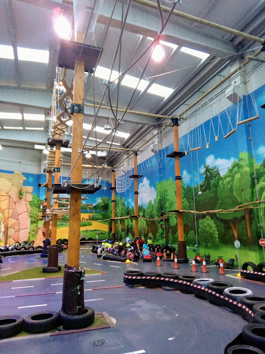 Si quieres que tu hijo se vaya contento para casa después de ir a ese parque, si se le puede llamar así mejor no le celebres el cumpleaños ahí. Lo venden como algo distinto a los demás parques y solo tiene dos actividades un circuito de altura donde los niños se abrasan las manos con las cuerdas por no darles guantes y si tiene miedo a las alturas poco o nada puede hacer ( igual le tendrás que dejar el móvil). Y el segundo circuito de karting donde la seguridad brilla por su ausencia, los coches están destrozados con un miserable pedazo de hidrotubo de protección ( los que lo tienen) dejando las partes bajas del coche sin protección ( tornillos y partes cortantes a la vista) con el riesgo de ser atropellado o incluso en un vuelvo como tengo visto llevar algún golpe en la frente o en la cara, en el tema de los coches haré todo lo posible para que tengan una inspección. Los monitores un pasotismo total si uno de los coches no funciona tu deber es cambiarlo y no decirle a un niño que no se la cambias y el chaval se vaya para casa enfadado. Nada recomendable y no...