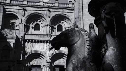 La Fuente de los Caballos, también conocida como Fonte dos Cabalos o Fonte das Praterías, se sitúa en la Plaza de Platerías al sur de la Catedral de Santiago. El espacio está formado por numerosos detalles renacentistas, pero justo en el centro de la plaza se alza una fuente con cuatro caballos de estilo barroco que no tarda en llamar la atención.