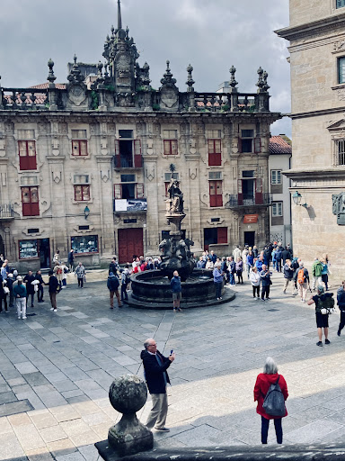 Read more…è la Fontana dei Cavalli!!…a Santiago de Compostela!!…si può vedere a pochi passi dalla Cattedrale!!…in una delle famose Piazze della città!!…nel centro storico della città!!…è situata nel mezzo della Plaza de Las Platerias!!…si dice che sia una Fontana in stile italiano!!…per via della forma circolare in pietra!!…con una base e circondata da uno scalino!!…al centro ci sono quattro cavalli e dalle loro bocche escono i getti di acqua!!…una figura femminile si presenta su un piedistallo!!…con una stella tenuta su dalla mano destra!!…la stella sta a significare la famosa stella di Compostela!!…che secondo la leggenda segnalò a un eremita della zona…il posto dove si trovava la tomba di San Giacomo!!…comunque bella!!…questa Fontana dei Cavalli!!…a Santiago de...