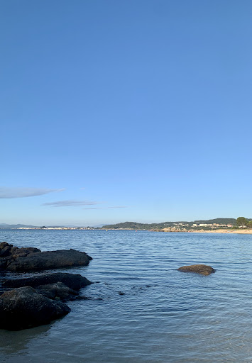 Pequeña pero no demasiado, con pinos y sombra a tus espaldas, rocas para aventurarse al baño desde ellas, zona para aparcar casi encima de la arena, un restaurante y un chiringuito y la temperatura del mar fresca pero muy agradable, mucho mejor que zona San Vicente. Vistas muy chulas a la ría de Arosa con sus bateas. En definitiva, una maravilla de playa sencilla y muy acogedora, para...