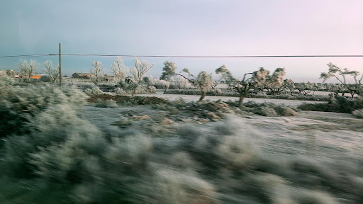 El camino hacia el sierro de las Janas, parte de la plaza del Ollano , continua por la calle del Naranjo y desemboca en campo abierto, para llegar tras poco más de 1 km. al mirador.