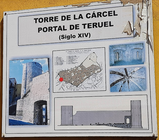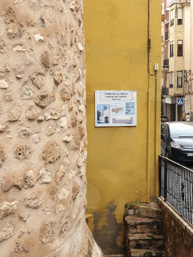 Read moreLa Torre de la Cárce protegía el portal de Teruel. Exteriormente es de planta cilíndrica con un cuerpo inferior de mayor diámetro y probablemente más primitivo que el anterior, en el que se sitúan las celdas que fueron utilizadas como cárceles. El segundo cuerpo tiene un diámetro de 8.70 m y está dividido interiormente en dos plantas de sección octogonal, con bóvedas de crucería estilo gótico, aspilleras y comunicación hasta la terraza por una escalera de caracol embebida en el muro. La altura total es de 21.30 m y su antigüedad, al igual que para la cercana torre del Verdugo, podría situarse en torno...