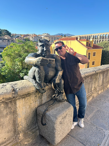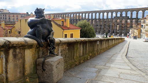 This quirky statue depicts a smiling devil taking a selfie with the aqueduct in the background. It refers to the popular Segovian legend that the aqueduct was built by the devil himself after making a wager for the soul of a young water carrier.