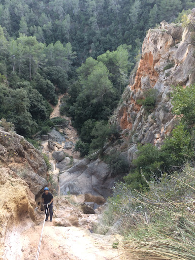 Meravellós paratge per rappelar les 2 cascades en un total de 4 parts fraccionades. Un impediment ha estat el propietari del restaurant que no li fa gracia que passen a escasos metres del restaurant pel barranc, domini públic hidràulic. Te ancoratges per recuperar menys a la cascada...