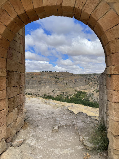 Esta puerta es una de las siete existentes en la antigua muralla medieval, que al parecer fue construida en el siglo XI. Está construida sobre basamentos árabes y es una puerta románica con arco central de medio punto, a ambos lados cuenta con cubos de planta rectangular. Según se recoge en publicaciones del año 1968, en esa época se realizó una recosntrucción debido al deterior que sufría. Desde el puente Picazos, sube hasta pasar por ella, lo que parece un camino empedrado, salvando una fuerte pendiente y que su origen podría remontarse a la época de la romanización de esta zona. Esta puerta daba acceso a los barrios, hoy desaperecidos, de San Pedro, al lado del cementerio viejo y al de Santa Eulalia, en las cercanías del fronton. Si se realiza la Senda de los Rios, nos la encontraremos sin...