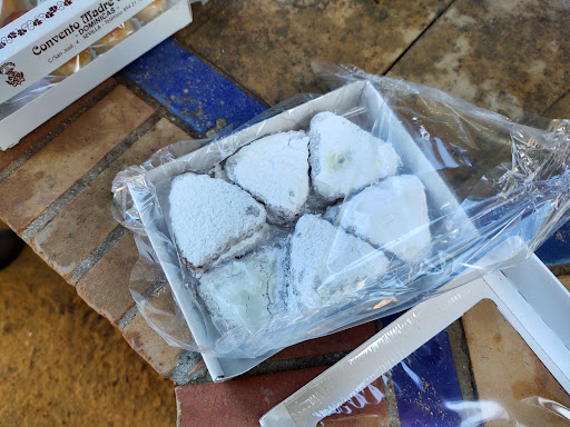 Read moreI only visited for the pastries as forced upon by my tour guide. I didn't even get to choose, my tour guide chose the marzipan orange peel dumpling looking things and the powered sugar covered chocolate infused triangular cookie things. Both were very sweet. I carried the leftover pastries in my carry on for the rest of my flights around Spain and my bag was rechecked more than a few times probably because of how the pastries are arranged in an "improvised" manner. I don't recommend eating at the pastries in...