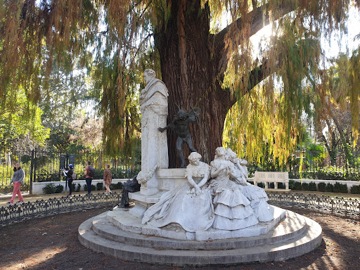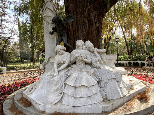 Read moreSe encuentra en el interior del Parque de María Luisa, cercano a la Plaza de España rodeando a un ciprés de los pantanos en materiales como el marmol y el bronce, siendo realizado por Lorenzo Coullaut Varela en 1911. La obra fue sufragada en su mayor parte por los hermanos Álvarez Quintero de los beneficios obtenidos de su obra "La rima eterna". En él aparecen el busto del escritor sevillano Gustavo Adolfo Bécquer, ademas de las figuras del “Amor Ilusionado”, el “Amor Poseído” y el “Amor Perdido”, que representan la rima “El amor que pasa” o Rima X, compuesta por él mismo. A éstas habría que sumarles la esculturas en bronce de "Eros" yacente como representante del amor herido y "Cupido" como el amor que hiere. Se completa la glorieta por una verja en hierro que imita un motivo floral, y en su alrededor bancos en piedra, los cuales no son los originales que fueran realizados por Aníbal González. El monumento ha sido restaurado en tres ocasiones, una para limpieza (1988), otra por deterioro debido al crecimiento del arbol y su posterior adaptacion al nuevo espacio (2016) y la ultima debido al vandalismo por la que se repuso el arco de Eros (2022). La Rima X que inspira este monumento dice así: "Los invisibles átomos del aire en derredor palpitan y se inflaman, el cielo se deshace en rayos de oro, la tierra se estremece alborozada. Oigo flotando en olas de armonías, rumor de besos y batir de alas; mis párpados se cierran... ¿Qué sucede? ¿Dime? ¡Silencio! ¡Es el...