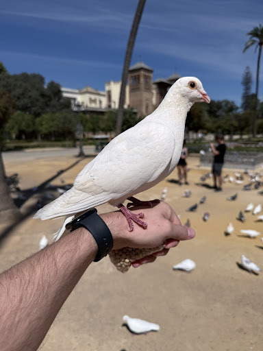 Uno de los lugares impresindibles si visitas Sevilla, su enclave es uno de los extremos de la Plaza de América dentro del Parque de María Luisa, es conocido por el Parqué de las Palomas porque allí se concentran un gran numeros de palomas a las que se les suele dar de comer (hay puestos de comida para palomas) y es una costumbre popular hacerse fotos con las palomas posadas sobre las personas mientras se les da de comer, o arremolinadas a su alrededor buscando comida. Tipicamente en su mayoría eran blancas aunque ahora se pueden ver de todas las clases y colores por igual. Si estás en Sevilla tienes que visitarlo no solo para hacerte una foto y ver cuantas palomas eres capaz de mantener sobre ti a la vez, si no por los edificios de la exposición iberoamericana de 1929 que se encuentran en la Plaza de América y sus aledaños (originalmente el 'Huerto de...