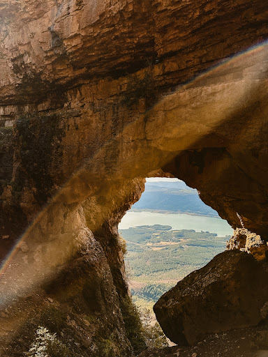 Espectacular panorama que se encuentra al llegar al paso del oso 🐻. La subida desde Monasterio Leyre no es apta para todo público por la dificultad del terreno pero las vistas durante la subida son muy chulas. En cambio desde la zona de Bigüezal, el terreno ofrece menos desnivel y es más tendido. El lugar es de aquellos que te dejan con la boca abierta 😲. La excursión se puede completar con la visita a la cruz de Castellar. Ver el pantano de Yesa bien repletico de agua(mayo 2025), con sus aguas azulicas es un bonito premio al esfuerzo. Mucha precaución porque un pequeño resbalón y te vas directo al pantano. Decir que el arco, son realmente dos, pero solo se aprecia si estás debajo de el prácticamente. Lugar de esos para hincharse a sacar...