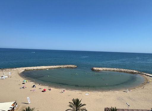 Read moreEsta playa es de las mas alejadas del centro de Sitges. Pero al tener poca entrada de mar es bastante tranquila el agua. A veces está con bastante gente en verano. Hay un chiringuito donde puedes comer o comprar bebidas, no es barato pero por lo menos te da el servicio si te da hambre o sed. Si desde la playa quieres ir a las tiendas del centro hay una caminata de unos 20 minutos pero vale la pena pues el paseo es ancho y tranquilo. Si subes calle arriba puedes encontrar aparcamientos aunque con algunas...