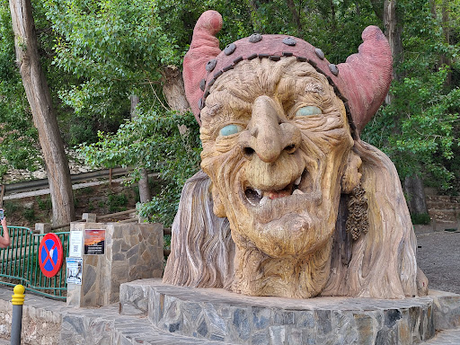 Read moreEnorme cabeza de bruja que te da la bienvenida en la entrada del pueblo que aporta personalidad y te empie za a enseñar la cantidad de cosas cu riosas que tiene este magico pueblo Los aparcamientos del centro abren a las 10h.a tener en cuenta porque en su interior no se puede aparcar fuera de estos y los vecinos te ani man a que saques el coche del pue blo aún siendo las 7...