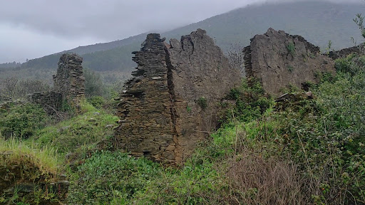 Pueblo abandonado en la década de los 1960 antes de la llegada de la corriente eléctrica, está ubicado en cuesta en la ladera de una colina que baja hasta el río Alagón, a 1 km de distancia de Riomalo de Abajo y a 8 km de Sotoserrano. Las casas son de lajas de piedra de pizarra con argamasa rojiza como la tierra del lugar, y tienen los techos derrumbados por falta de mantenimiento de sus vigas de madera. Tanto el interior de las casas como las antiguas calles del pueblo están tomadas de maleza y zarzas y no son transitables. Es una visita interesante por lo espectral y decadente del espectáculo. Desde el pueblo hay unas bonitas vistas del valle. Entre el pueblo y el cauce del río que está algo más abajo hay una extensión considerable de campo de olivos abandonados, que...