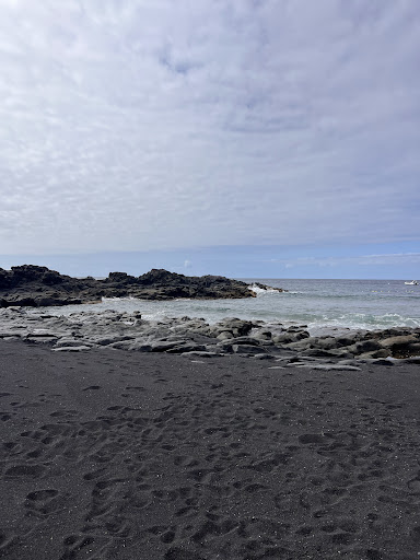 Read moreA rocky black sand beach. The ocean floor is very rocky and the sand is gritty from rocks wearing swimming shoes is recommended. No shells but some small pieces of sea glass can be found. At the end of the beach there is a small tide pool big enough for swimming with less waves.There are life guards and bathrooms. There is a parking lot at the bottom of the hill and you walk through the tunnel...