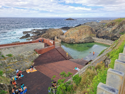 Read moreAntigua cetárea de Tapia que se ha acondicionado como piscina natural. Dispone de una plataforma que suele estar bastante llena y es casi imposible poner una toalla, aunque en esta ocasión no era así, supongo por que el tiempo no acompañaba. Aún asi es digno acercarse y darse un baño tranquilo aunque el mar esté movido. Muy cerca y de fácil acceso están las playas de Ribeiria y Furadas, y también sale o termina un paseo hasta el puerto con quizá las mejores vistas del puerto de Tapia...