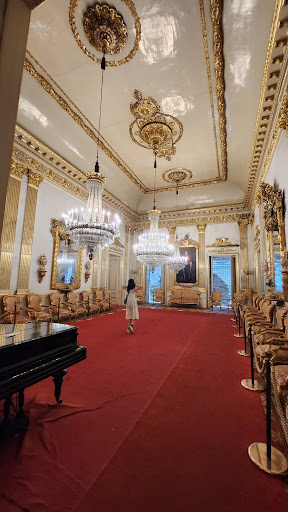 Pel que fa al saló de ball, brilla. No només pel color or, sinó també per les grans làmpades penjades a la paret. Malauradament, no disposa de frescos, però és que com que és original i abans no els hi tenien, doncs ara tampoc.