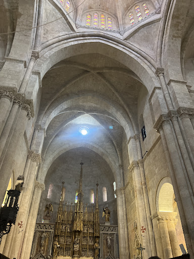 Read moreMetropolitan Primate Cathedral Basilica of Saint Thecla of Tarragona. That cathedral is the center of the oldest diocese in Catalonia and medieval territories of the Crown of Aragon. Although the first chapter existed here in the XI century, the construction of the present-day cathedral started in 1154 and had been accomplished only in the second half of the XIV century. Although some elements were added only in XVI-XVII centuries, too. That's why this cathedral demonstrates transitional from romanesque to gothic architectural style. Central nave is expressively gothic while side naves are romanesque. Belfries had to be erected over the side naves, but such a project had never materialized because political centers removed to Valladolid and Madrid after reunification of the kingdoms of Castile and Leon with Crown of Aragon and Catalonian counties in 1467. Tarragona, Catalonia, 🇪🇸 Kingdom of Spain 🇪🇸....
