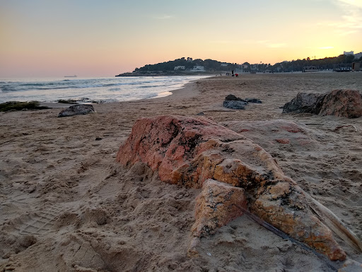 Read morePiccola spiaggia urbana con sabbia finissima, alcune rocce su cui si puó salire facilmente (proibiti i tuffi), reti da beachvolley, un paio di docce e due-tre chitinguitos, in settimana non tutti aperti. Tanti parcheggi disponibili. Purtroppo l'abbiamo trovata molto sporca, c'è un fiumiciattolo che scarica direttamente in mare e oggi passandoci davanti abbiamo visto una miriade di cerotti, pezzi di plastica e altri rifiuti indefinibili provenienti da lí. Proprio alle sue spalle scorre una linea ferroviaria sulla quale sferragliano ogni 10 minuti treni rumorosi (anche treni merci lunghissimi diretti al porto poco più in giù), insomma diciamo romanticismo zero...comunque è molto frequentata dai locals, certo se si vive in città bisogna fare compromessi e convivere con un po' di brutture. Ottima per farci un bagno e una corsetta...