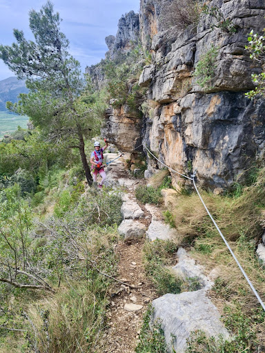 Vía ferrata espectacular por las vistas a Tavernes de la Valldigna y al mar Mediterráneo. Es una vía fácil y apta para iniciación ya que la mayoría de los tramos son horizontales, caminos equipados con cable de vida que pasan por repisas y algunas grapas que ayudan en pasos complicados. La parte más bonita es sin duda dónde se encuentran las figuras de las cabras. En la última parte tramo vertical sin mucha complicación. Acceso y salida de 40’ cada uno con un paisaje inolvidable. Fui con la empresa Alicante Aventura y sin duda repetiré pronto con amigos, Vicente Monerris fue un guía magnífico e hizo unas fotos preciosas para el recuerdo. Gracias por esta...