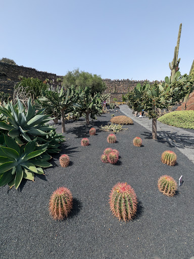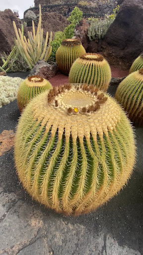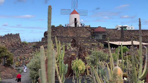 Key Features of the Jardín de Cactus: Design and Architecture: • The garden is set within an old cactus farm and covers an area of about 5,000 square meters. Manrique transformed the space by integrating the natural volcanic terrain with modern landscaping and design elements. • The garden features a striking windmill (molino) at its center, which was restored and now serves as a focal point for visitors. It adds a unique architectural touch that reflects Lanzarote’s history and agricultural heritage. Cactus Collection: • The Jardín de Cactus boasts a diverse collection of over 1,000 species of cacti and succulents, many of which are native to arid regions of the Americas, Africa, and other parts of the world. • The arrangement of the plants is meticulously designed, with cacti of various shapes, sizes, and colors, creating visually striking patterns and contrasts. Integration with Nature: • True to César Manrique’s vision, the garden blends with the surrounding volcanic landscape. The paths are carved from the natural lava rock, and the plants are arranged in harmony with the island’s unique geography. • The use of volcanic stone and natural materials throughout the garden complements the barren yet beautiful landscape of Lanzarote. Educational Value: • The garden not only serves as a visual feast but also offers educational insight into the different species of cacti, their adaptation to dry environments, and the ecological significance of these plants in desert ecosystems. Cultural and Artistic Heritage: • The Jardín de Cactus is a perfect example of César Manrique’s philosophy, which emphasized environmental sustainability, artistic expression, and the preservation of Lanzarote’s natural beauty. • The garden is one of several of Manrique’s creations on the island, all of which reflect his dedication to integrating art with nature.