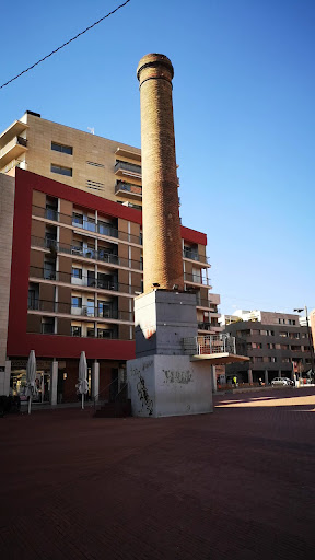 Es una plaza grande y desangelada que ocupa los terrenos que antes eran una fábrica textil, está rodeada por bloques de edificios nuevos y por las calles San Mariano y la calle Baldric. En el centro han dejado la chimenea de la fábrica que había antes. Ahora se utiliza para poner tablados y que encima actúen grupos musicales y otros espectáculos, incluso un circo que viene una vez al año. El resto del tiempo es zona de juegos de los niños que salen de los diferentes colegios que hay en la zona. En los soportales que hay han puesto varios locales con un bar, y otro que es un restaurante mejicano y otro que es una tienda de comida china, y más arriba hay una zona para juegos de niños y en frente un bar restaurante turco además en la esquina también tienen un tienda de empanadas y...
