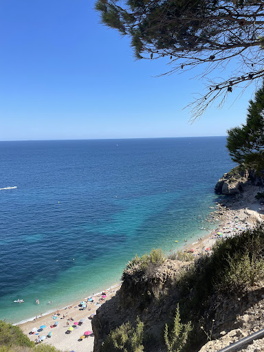 La playa de Moraira es una auténtica joya en la costa de Alicante. Si bien no presume de una extensión kilómétrica, su tamaño compacto es precisamente uno de sus grandes encantos. Lo que le falta en longitud lo compensa con creces en belleza y carácter. Al llegar, la primera impresión es la de un paisaje espectacular. Las vistas panorámicas son sencillamente preciosas, con el azul intenso del Mediterráneo contrastando con el verde de la vegetación circundante y las rocas que enmarcan la cala. Es un lugar donde la naturaleza se exhibe en todo su esplendor, invitando a la relajación y a la contemplación. Uno de los elementos más distintivos y maravillosos de esta playa es el peculiar círculo de palmeras que la adorna. Este toque exótico no solo proporciona una sombra bienvenida en los días soleados, sino que también crea un ambiente único y fotogénico. Pasear bajo sus copas y sentir la brisa marina es una experiencia deliciosa. La arena fina y dorada invita a tumbarse y disfrutar del sol, mientras que sus aguas cristalinas y tranquilas son perfectas para un baño relajante. Además, la playa suele contar con servicios que garantizan una estancia cómoda, como duchas y, en ocasiones, alquiler de sombrillas y hamacas. Su ubicación, en el corazón de la encantadora localidad de Moraira, añade un atractivo adicional. Tras un día de playa, se puede disfrutar de la animada vida del pueblo, con sus restaurantes, bares y tiendas a pocos pasos. En resumen, la playa de Moraira es un destino que enamora por su belleza natural, sus vistas impresionantes y ese toque mágico que le confiere su singular círculo de palmeras. Aunque modesta en tamaño, su encanto es inmenso, convirtiéndola en un rincón espectacular de la costa alicantina que merece la pena descubrir...
