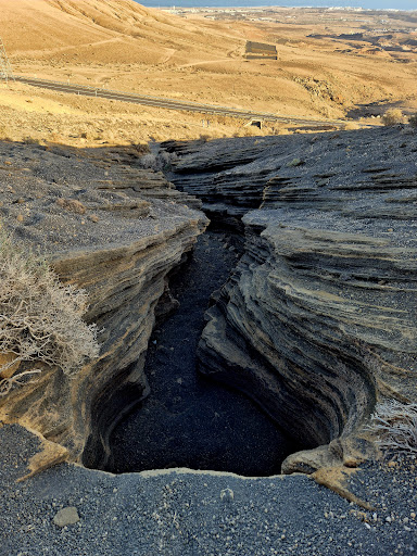 As you approach (by car) slow down as there's no official parking lot, just a dusty and gravel area, with plenty of space however take care and aim to exit the road about 400 - 600m passed the Google maps pin / or passed the sign for San Bartolome. Do this or risk a 30cm curb drop!! You can drive up the hill on the gravel, parallel to the road, to the parking area. Go early, before 11am as it gets busy. Once parked, walk parallel to the road to the point where the overhead pylons and the entrance to the gorge is on your right. There's an information board next to the main road - a ridiculous place for it! The gorge is narrow in places and spectacular in full sun. The more able can climb out the far end, turn right and (easily) traverse across back to the cars. Alternatively do it in reverse, but it looked a bit more dangerous climbing backwards down into the gorge. The parking, as I say is gravel and unofficial, none of the route is suitable for the less able. There's no other facilities like shops or toilets! Enjoy...