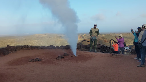Read moreOur visit to this location was organized as part of an excursion through Norwegian Cruise Line. It was an interesting demonstration of the volcanic activity located there. For the first demonstration we were placed in a circle and the guide handed us rocks from just a few inches below the surface to show the heat stored in the rocks. After this we we brought to a location where they placed dry grass in a pit a couple of feet deep and within seconds the grass caught fire. The last demonstration was with a series of artificial geysers, just by walking nearby we could all feel the heat coming out from below, then the guide took a bucket of water and dumped it all in and the plume of steam came out instantly. It's so very impressive just how intense this geothermal process is. After the demonstrations we walked through the restaurant and saw the natural oven that was built to cook the food directly over a volcanic steam vent - it wasn't mentioned whether this was a natural vent but it's really cool to see this happen. The entire oven smelled really good with the chicken that was being cooked there. Unfortunately we didn't have time to taste any of the food. There is also a small cafe where you can buy threats, coffees and other drinks. After this, we went through the valley trail and saw all the different landscapes created by the Timanfaya volcanic events of the 17th and 18th century. It really felt like you were visiting another planet, many of the landscapes looked like the surface of...