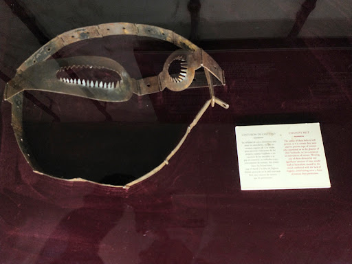 Most devices/exhibits are reproductions of actual torture devices used; however there a many real, actual historical items under glass. I show a couple.