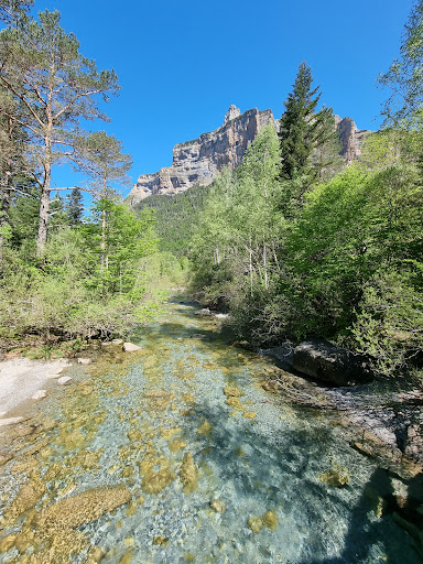 para llegar hasta aquí en temporada alta deberemos coger el servicio de autobús que parte de la localidad de Torla y que en aproximadamente 20 minutos nos dejará en el parking donde comienza el recorrido. En temporada baja podremos entrar con nuestro vehículo hasta el punto de partida.