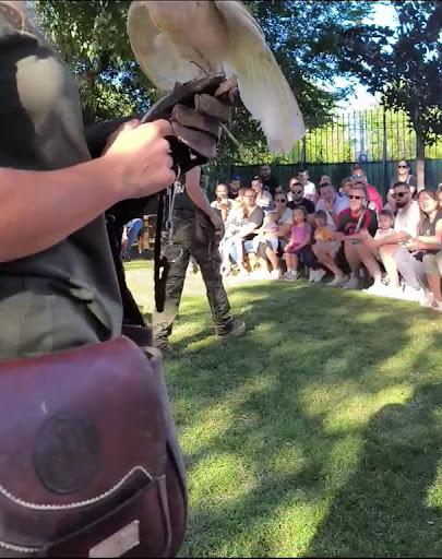 La segunda parte se hace en una zona circular preparada con bancos de madera y caben todas las personas sin problema con el aforo completo. Aquí es donde hacen una exhibición con algunas especies que han rescatado. Es muy chula, lechuzas, mapaches, águilas, serval y otros animalitos son los que pudimos ver en la siguiente hora y fue muy entretenido.