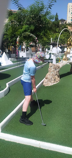 You should know that this mini golf course has recently undergone improvements, rendering some of the older reviews outdated. It's now even better! While it may not be the most spectacularly innovative mini golf venue, it is clean, family-friendly, and offers a challenge for all ages. The course is relatively small, with adequately sized holes but not much space between them, which can result in it getting quite busy. However, this is mainly due to its touristy location. The recent refurbishment includes new greens, making putting quite enjoyable. In any case, it's a fun experience, and I recommend it if you're nearby or looking for a pleasant, standard mini golf...