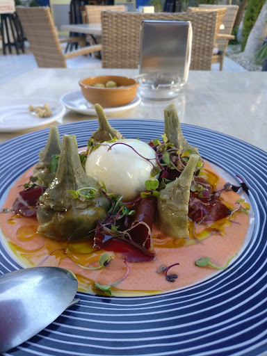 Read moreLas Tablas is what you may call a small pearl at the Costa del Sol. It is right at the intersection of the road down from the center, but has a very nice atmosphere between all the plants. The terrace is big, but maybe small enough to make it cozy. The waiters try to speak and understand English, what makes this perfect to try some Spanish from your side. They are very friendly and try to help you the best they could. The food is very tasty. Especially the meat, what is prepared on a large grill/stove/bbq. I recommend this for diner, but not with a large group. If you are intrigued, take a look inside where lots of bottles of wine are stored and pictures are hanging on the walls. Thank you for having the large group and thanks again for your patience and...