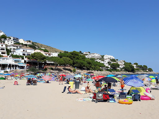 Cala Montgó is a beautiful beach located on the Costa Brava in Catalonia, Spain. It is situated in the town of l'Escala and is known for its crystal-clear waters and stunning natural surroundings. The beach is surrounded by pine forests and cliffs, offering visitors a picturesque and peaceful setting.