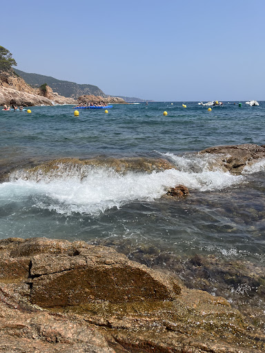 Wonderfull place with excellent opportunities to go around snorkelling the bay. You are surrounded by beautiful scenery and the ride towards the cala from Tossa de Mar (south), San Feliu de Giuxols (north) or Gerona (inward) is stunning. In summer there is a blue platform they place in the bay where you can chill out for a bit. The sand is coarse and after a few meters into the water is replaced by rounded boulders. One could either start swimming a bit early or use water shoes. There are showers along the sides...