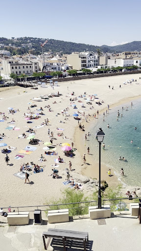 Platja Gran is hands down one of the most beautiful beaches in Costa Brava. The setting is absolutely magical — soft golden sand, crystal-clear waters, and the medieval castle of Tossa de Mar rising just above the shoreline. It feels like stepping into a postcard.