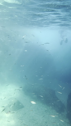 The water is CRYSTAL clear and perfect for snorkelling. We took our own masks and spent hours swimming underwater to look at the hundreds of FISH in the water! So beautiful. A lovely pleasant swim out a bit deeper too.