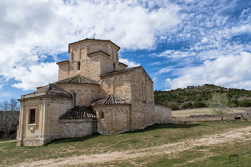 Está construida en sillarejo de piedra caliza del páramo, la piedra es muy porosa y de color claro que contribuye a su luminosidad. Los muros carecen de contrafuertes por lo que son muy gruesos. La arquitectura exterior se caracteriza por las lesenas (bandas lombardas) y los arquillos ciegos característicos de este románico inicial, que crean un efecto de claro-oscuro con la luz, y rompen la monotonía de la piedra. Dos sencillas ventanas en ambos muros iluminan la nave central, cada una de las naves laterales tiene...