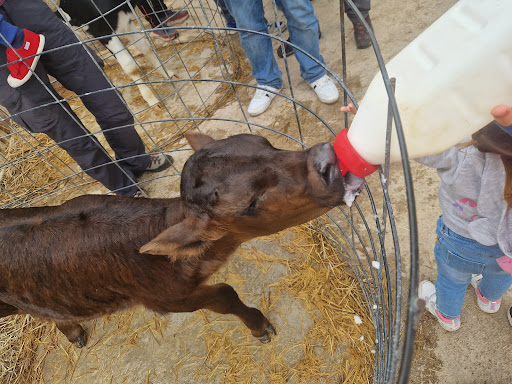 Nuestro objetivo era poder visitar de primera mano una granja de leche. Tuvimos que esperar un buen rato después de la hora concertada. En verano hay dos visitas, una por la mañana y otra por la tarde. Fuimos cuatro personas, dos niños ya mayores, pero esto en si no tiene ningún límite de edad. En primer lugar nos reciben unos perros super simpáticos A los que les encantan los mimos, no se separan mientras reciban caricias. Lo que menos nos gustó de todo fue la charla del dueño. Un monólogo sobre las explotaciones ganaderas y cómo está en contra de Mercadona por su política de compras. Algo, que sinceramente no pega para nada en unas charlas y visitas, principalmente con niños. Los nuestros eran grandes y pueden aguantar pero la gran mayoría son niños pequeños que quieren ver a los ternerinos...y aguantar la charla en un poco tedioso. Debería plantearse este tipo de charla. Y hablar algo más genéricamente sobre las grandes superficies... Imagino que las políticas de compras serán iguales las de Mercadona, Carrefour, Lidl, etc. Por favor, una jornada agradable y no una charla casi política. La explicación del resto de la granja bien, pero no vemos nada más de las instalaciones, solamente donde están las vacas lecheras y los terneros. El momento más top era darle de mamar a los terneros con el biberón, claro que a veces hay mucha gente y un número limitado de biberones... La entrada a la visita cuesta dinero a todos, y a grandes y chicos nos gusta esa experiencia, por eso vamos.... habrá que ver si tienen que tener un cupo. Después de la visita tuvimos una degustación de productos. Productos de calidad y auténticos. Eso sí, la degustación... Muy pequeña en cantidad, podía ser un poco más espléndidos cuando saben que la mayoría de las visitas compra algo. Nosotros nos llevamos un queso madurado, uno fresco y una quesada. Todo muy rico. Pero creo que las porciones de degustación no pasaría nada porque fueran más generosas. Cómo experiencia para niños pequeños muy buena, si se les entretiene con las cosas que hay en la granja (camas elásticas, pequeña tirolina, etc) porque si no se cansan...