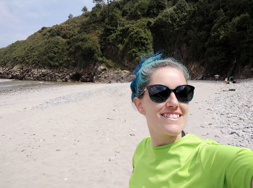 Me encanta: grande, tranquila, con poca gente y ambiente respetuoso y agradable. Vistas de monte, rocas y naturaleza junto a las cuevas pero también una playa con marea baja y cierto oleaje. Perfecta para descansar, pasear, jugar en la orilla o relajarse leyendo... Hay una parte de arena y también de rocas. Así que, se puede elegir. Y al fondo, a la espalda, un gran puente moderno. Un bonito espacio para disfrutar tranquilamente de la naturaleza y la playa sin estar masificado. Además, hay puesto de vigilancia...
